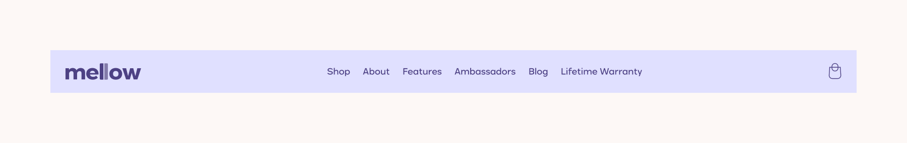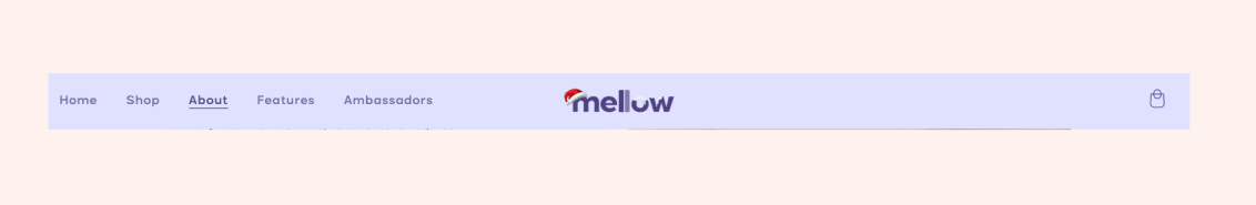 To evaluate the solidity of the fundamental design, consider the example of Buffy, which also employs a centered logo in its navigation bar. A key takeaway is the visual balance achieved between the elements on the right and left sides. In contrast, Mellow's current configuration lacks this balance, placing five links on the left and only a small icon on the right.